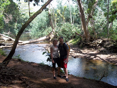 On the the way to the Secret Falls, although they didn't seem like such a secret to me. We had to cross the river here. There's Hubby Wubby in the red shorts.